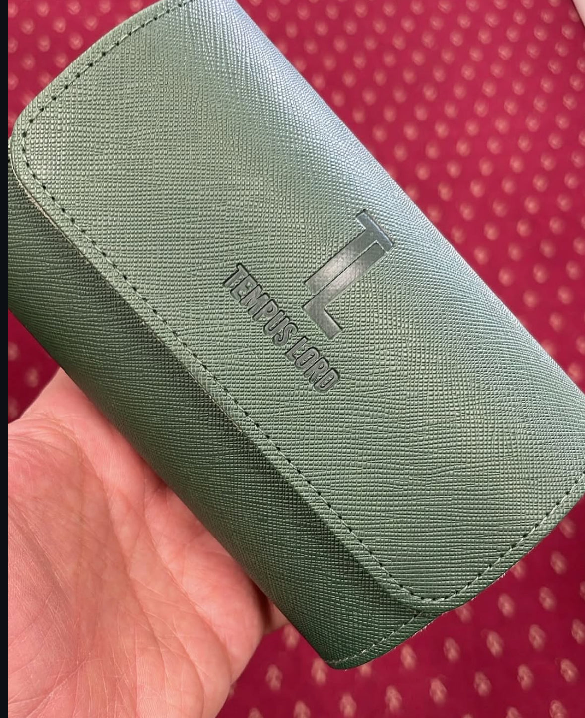 Custom Triple olive green watch case with embossed logo