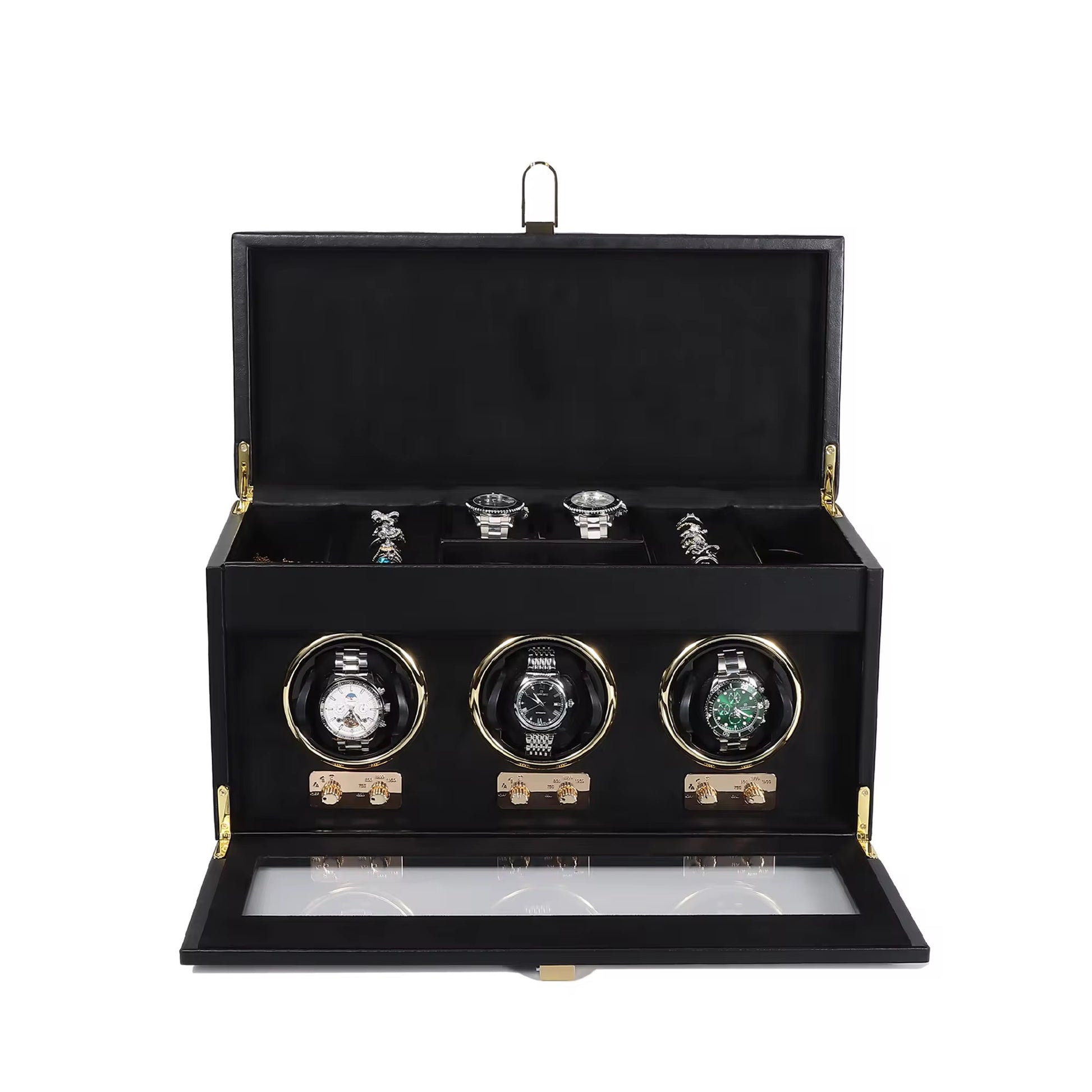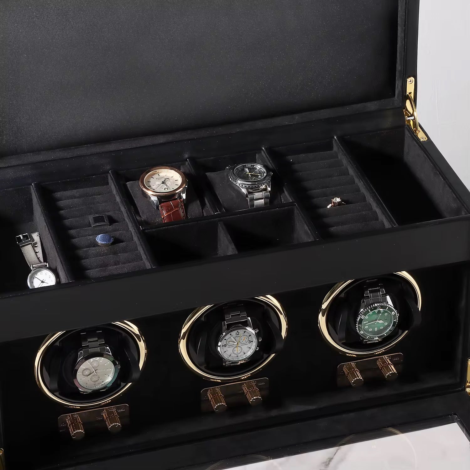 With a capacity to store and wind up to 3 watches and a separate compartment for jewellery, it is the perfect solution for organizing and protecting your valuable timepieces.