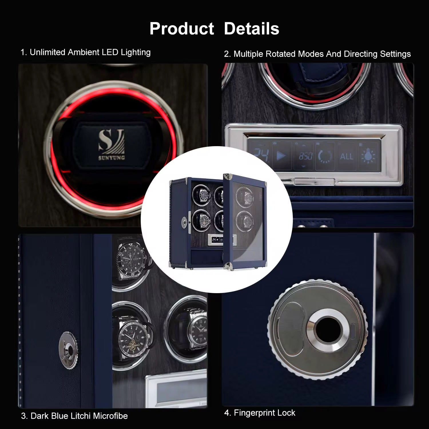 The Royal Watch Winder winds 6 watches simultaneously with the finest materials and the ability to add your logo.